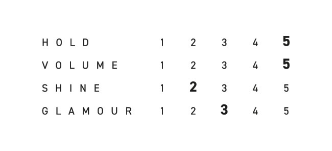 Stiprios fiksacijos formavimo putos, užtikrinančios ilgai išliekantį rezultatą ir patikimą šukuosenos kontrolę. Apsauginė formulė padeda išlaikyti plauko struktūrą, suteikia apimties ir purumo jų neapsunkinant.