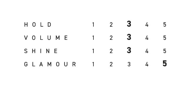 Suteikia lengvą, elastingą fiksaciją, todėl plaukai išlieka formuojami ir natūraliai judrūs.